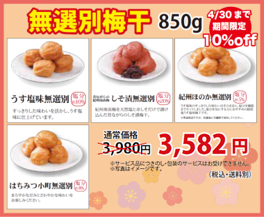 ● 年末年始のご案内●いつも「お梅はん本舗」をご利用いただき、誠にありがとうございます。 誠に勝手ながら、12月27日(土)〜1月4日(日)までお休みとさせていただきます。 休業期間中、インターネットでのご注文は24時間受け付けておりますが、商品の発送、電話やメールでのご対応、ご返信はお受けできませんのでご了承下さい。 ・12月25日(木)までのご注文は、年内に発送させていただきます。 ・12月26日(金)以降にいただきましたご注文に関しましては1月5日(月)より順次対応させていただきます。 ※1部対応できない商品もございますのでご了承くださいませ。 |
