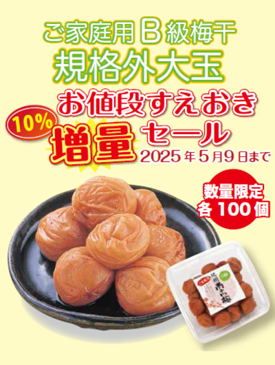 昨年に続き今年も梅の作柄が凶作で、雹の被害も甚大なため、11月より価格変更もしくは規格変更となります。